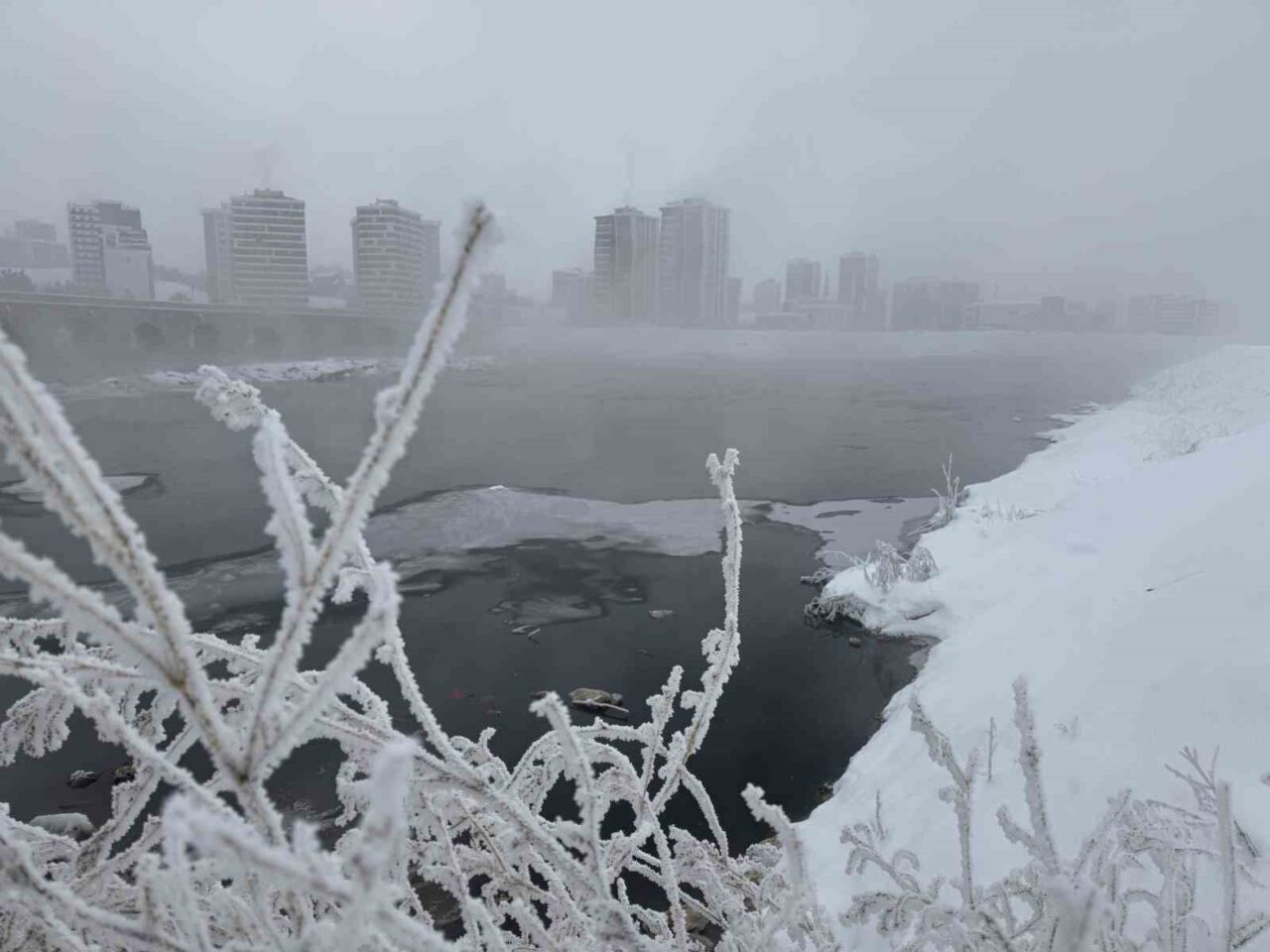 Meteoroloji Genel Müdürlüğü’nün soğuk hava uyarısında bulunduğu Sivas’ta termometreler, gece saatlerinde sıfırın altına 22 dereceyi gösterdi. Soğuk havasıyla tanınan Sivas’tan doğarak Karadeniz’e dökülen ve Türkiye’nin en uzun nehri olan Kızılırmak, kısmen dondu. Nehrin şehirden geçen bazı bölümleri kısmen donarken, suda yaşayan canlılar donmamış alanlarda avlanmaya devam etti.