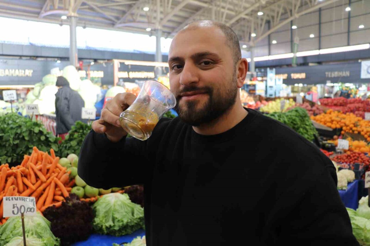 Sivas’ta havaların soğumasıyla birlikte gribal hastalıklar, öksürük ve benzeri rahatsızlıklarda belirgin bir artış yaşanmakta. Mevsimsel geçişlerin de etkisiyle birçok vatandaş uzun süre geçmeyen öksürük ve halsizlik gibi şikâyetlerle karşılaşmakta. Hayat kalitesini olumsuz etkileyen bu rahatsızlıklara karşı vatandaşlar doğal yöntemlere yöneliyor. Özellikle sofralarda yer alan karaturp, içerisine filtre edilen zencefil, zerdeçal ve bal karışımı ile halk arasında ‘babaanne ilacı’ olarak biliniyor. Kısa sürede hazırlanabilen ve tamamen doğal olan bu karışımın, geçmeyen öksürüklere karşı iyi geldiği ifade ediliyor. Sivas’ta Perakende Sebze Hali’nde esnaflık yapan Ferhat Çobanoğlu, bu karışımın vatandaşlar tarafından sıkça tercih edildiğini belirterek, “Bu karışım düzenli şekilde kullanılırsa bir sene boyunca ne bademcikleri şişer, ne balgam olur, ne göğsünde daralma olur ve KOAH hastalarına bile birebirdir” dedi.