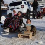 Hediye edilen kızakları alan öğrenciler, teneffüste okul önüne inerek kızakla kaydı. Kızağı ile kayan bir öğrenci, türkü söyledi. Renkli görüntülerin yaşandığı etkinlikte öğrenciler doyasıya eğlendi.