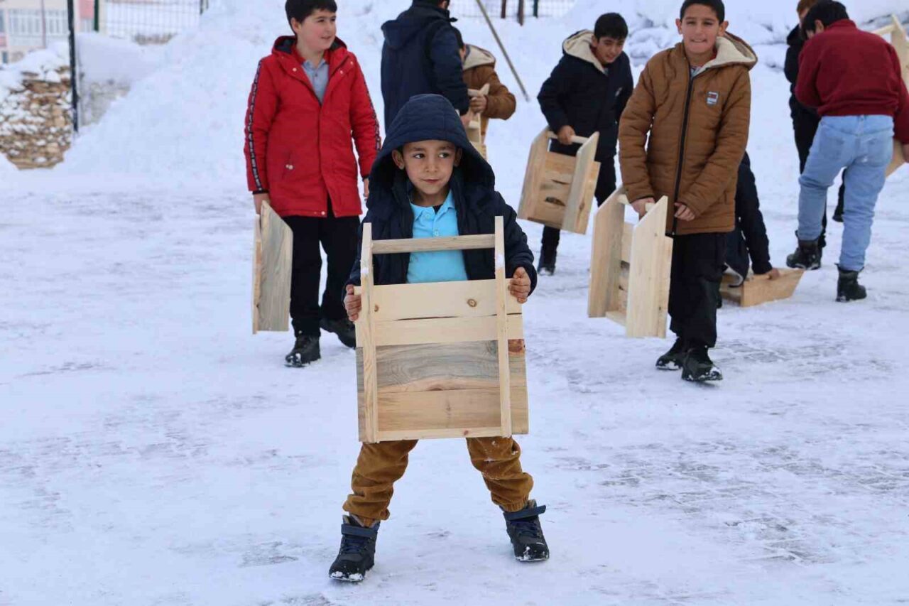 Hediye edilen kızakları alan öğrenciler, teneffüste okul önüne inerek kızakla kaydı. Kızağı ile kayan bir öğrenci, türkü söyledi. Renkli görüntülerin yaşandığı etkinlikte öğrenciler doyasıya eğlendi.