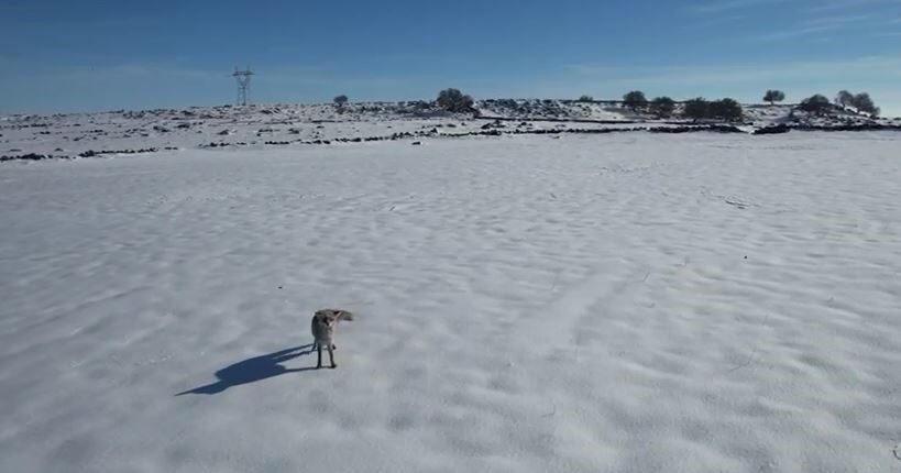 Siverek’e bağlı Beşyamaç kırsal mahallesinde etkili olan kar yağışı sonrasında karda ilerlemekte zorlanan bir tilki, bir vatandaş tarafından havadan görüntülendi. Dronu fark eden tilki, önce kısa süre durarak şaşkın bakışlarla dronu inceledi, ardından panikleyerek kaçmaya başladı.