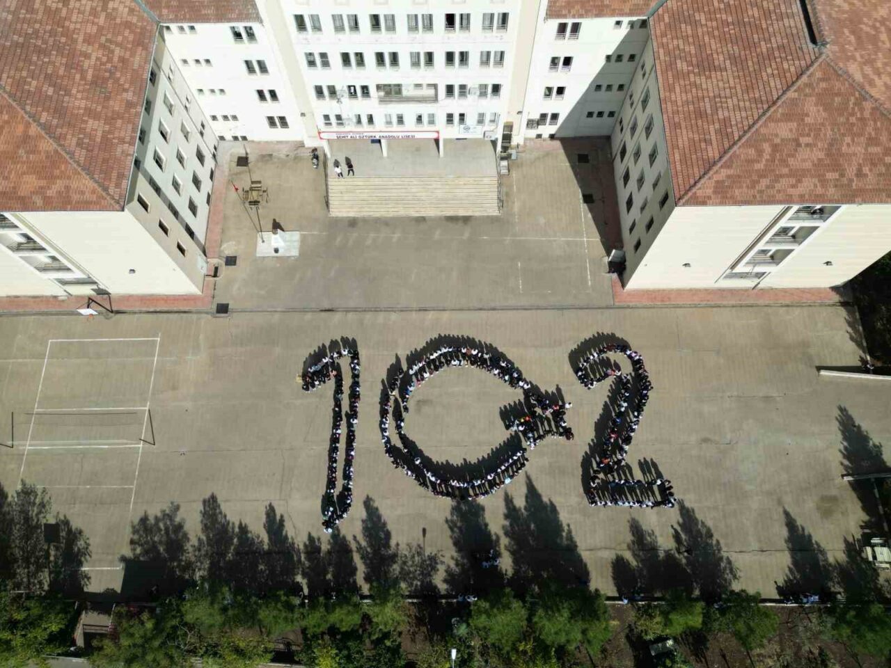 Siverek Şehit Ali Öztürk Anadolu Lisesi, Cumhuriyetin 102. yılı dolayısıyla okul bahçesinde özel bir gösteri düzenledi. Bu etkinlikte öğrenciler, Cumhuriyetin 102. yılına atıfta bulunan büyük bir rakam oluşturdu.