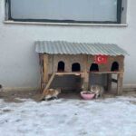 Dondurucu soğukların yaşandığı Elazığ’da sokak hayvanları da zor günler geçiriyor. Sivrice İlçe Emniyet Müdürlüğü’nde görev yapan personel, soğuk havalardan olumsuz etkilenen kediler için kendi imkanlarıyla kedi evi yaparak örnek bir davranış sergiledi. Kedi evinin içerisine yem ve su bırakan polis memurları, belirli aralıklarla yem takviyesi yaparak hem temel ihtiyaçlarını karşılıyor hem de zarar görmemeleri için güvende tutmaya çalışıyor.