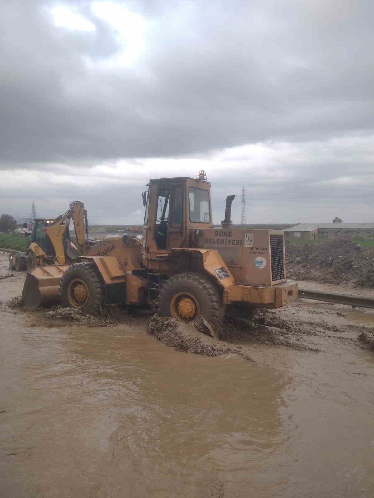 kapanan karayolunun yeniden ulaşıma açılması için Söke Belediyesi ekipleri hızla çalışma başlattı. Belediye iş makineleri ve personeli, Devlet Su İşleri ile Söke Ovası Sulama Birliği ekiplerine destek verdi. Savuca Mahallesi’nde ise yollarda biriken rüsubat belediye ekipleri tarafından temizlenirken, taşkın nedeniyle kapanan bir yolun açılması için yoğun mesai harcandı.