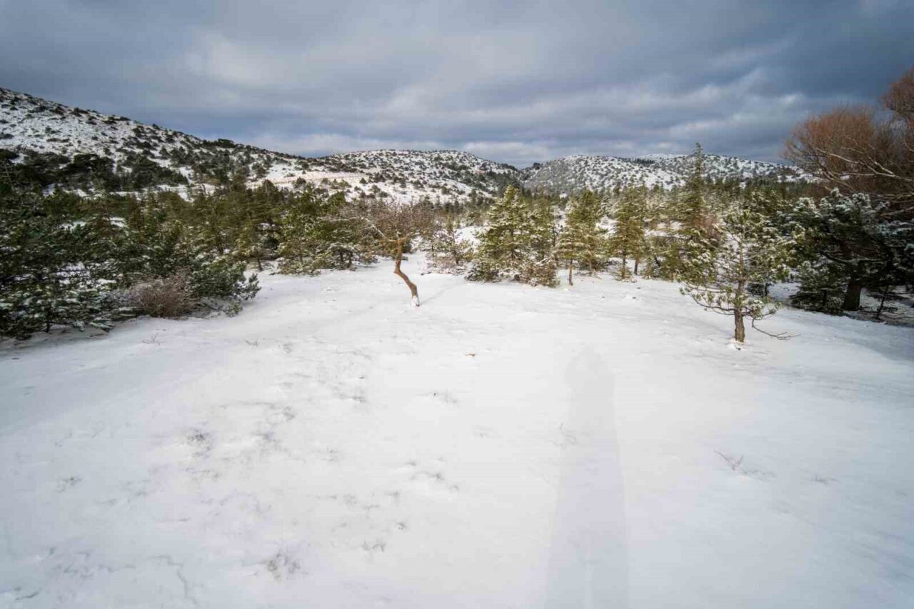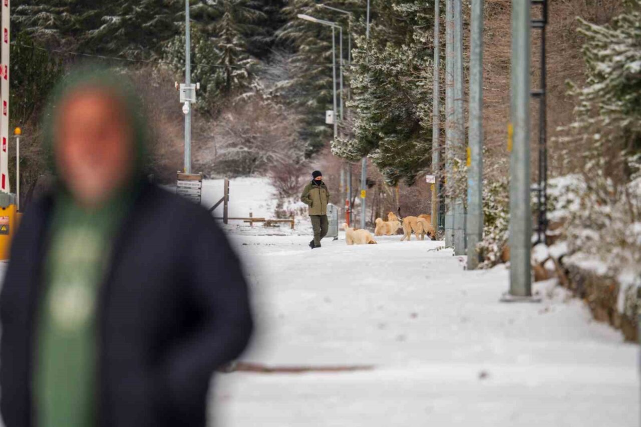 Beyaz örtüyle kaplanan milli parkta görsel bir şölen yaşanırken, objektiflere ilginç anlar da yansıdı. Parkta bulunan yaklaşık 5 köpeğin, bölgenin sembolü olan bir yılkı atını kovaladığı gözlemlendi. Köpeklerin havlayarak atın peşinden koştukları anlar, karın tadını çıkarmaya gelen vatandaşların da dikkatinden kaçmadı.