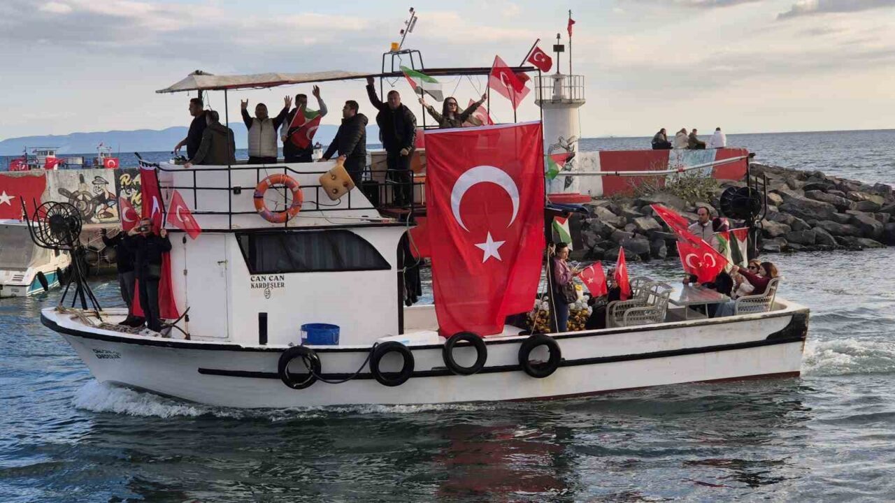 Tekirdağ’ın Süleymanpaşa ilçesinde, çok sayıda balıkçı teknesi Gazze’ye insani yardım ulaştırmak amacıyla yola çıkan Küresel Sumud Filosu’na destek olmak için denize açıldı.
