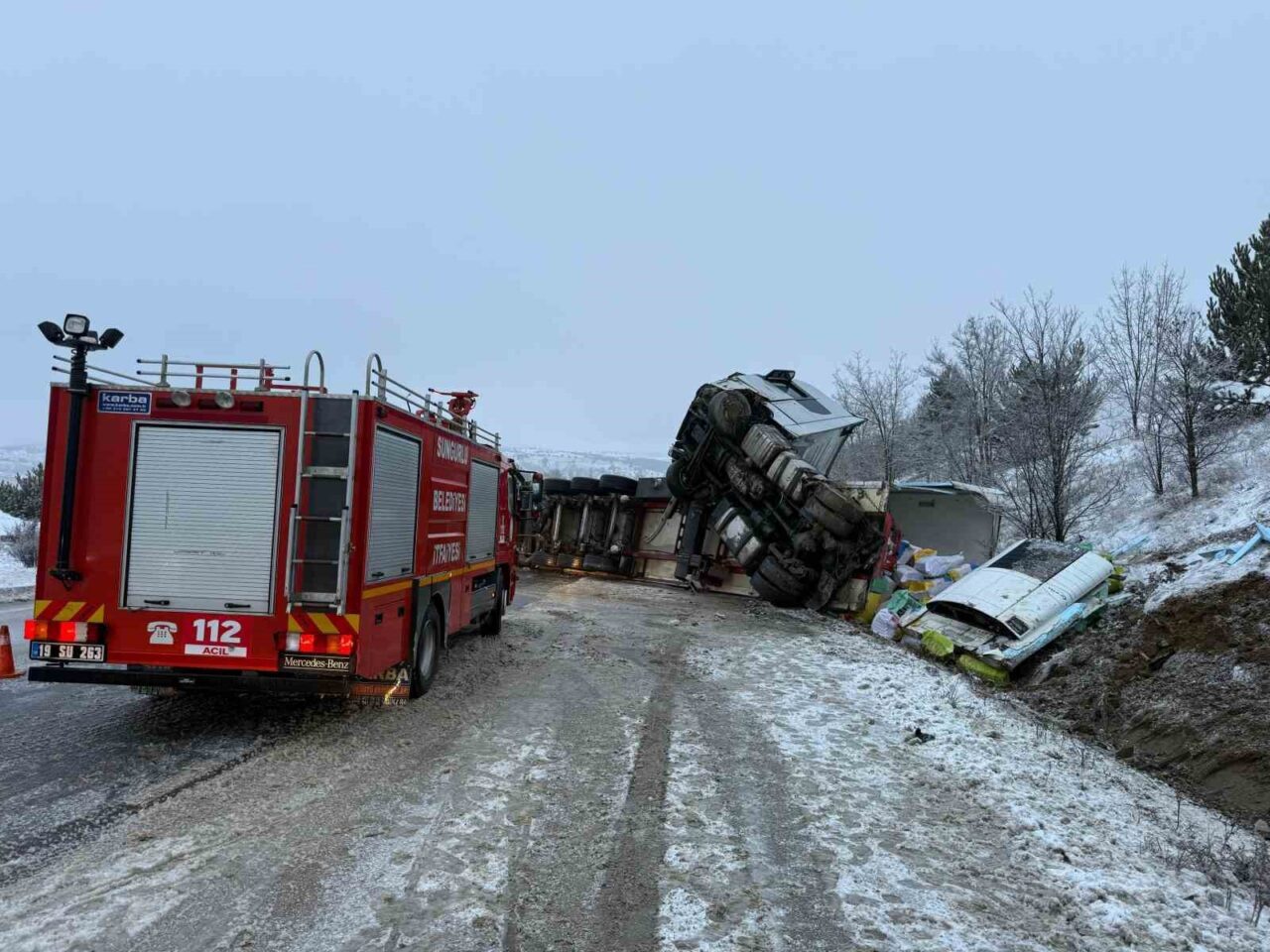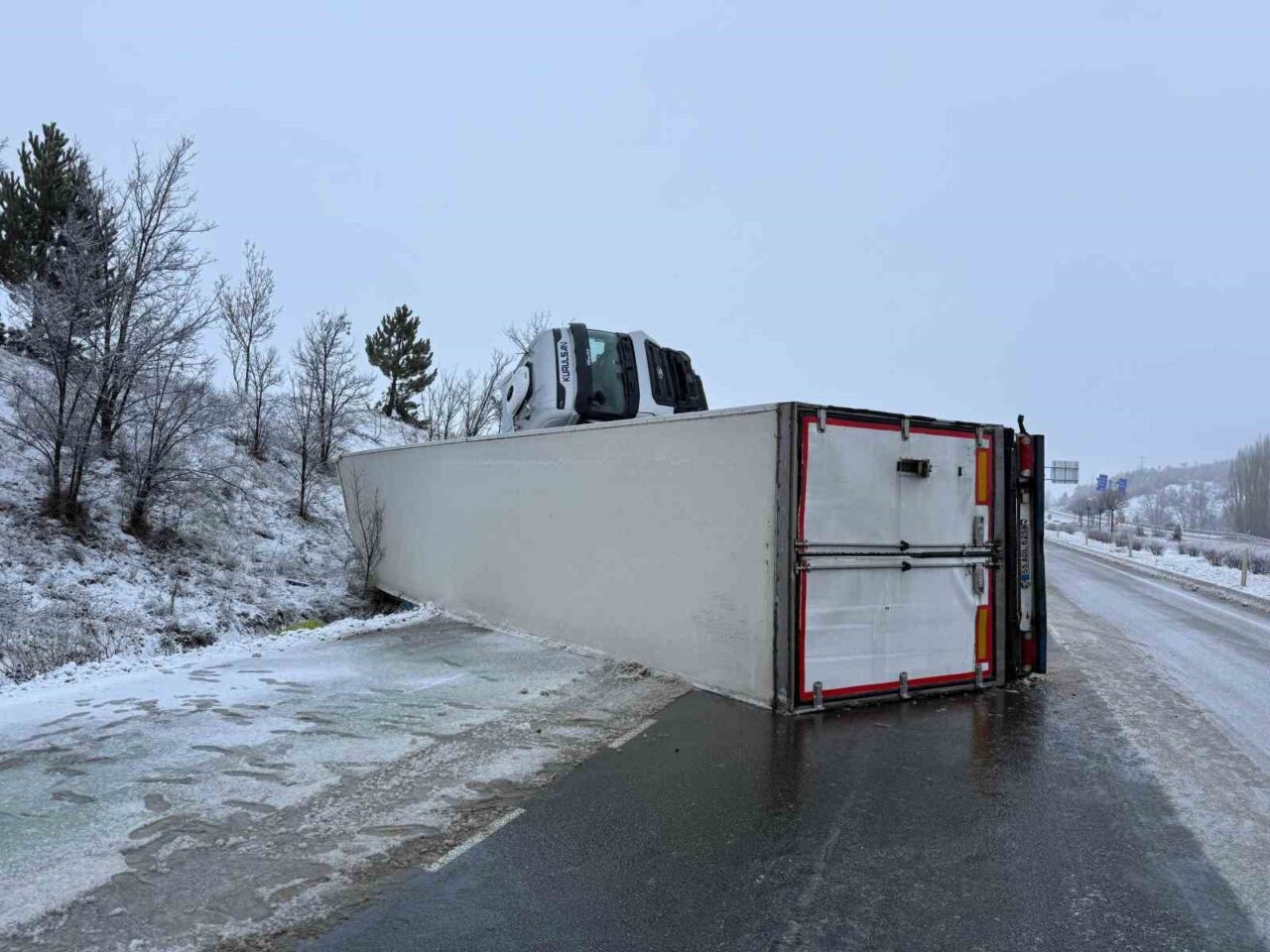 Kaza, Sungurlu ilçesi Çorum-Ankara karayolu Narlık mevkiinde meydana geldi. Edinilen bilgiye göre, Osman D. yönetimindeki 55 KR 750 plakalı tır, buzlanma nedeniyle sürücüsünün direksiyon hakimiyetini kaybetmesi sonucunda devrildi. Kazada tır sürücüsü yaralandı.