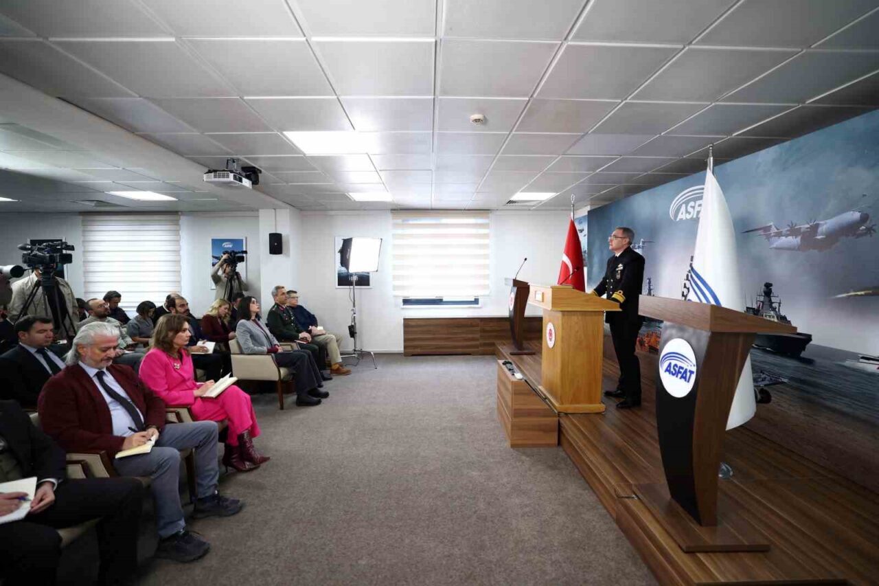 Milli Savunma Bakanlığı Basın ve Halkla İlişkiler Müşaviri Tuğamiral Zeki Aktürk, ASFAT Yerleşkesi’nde düzenlenen haftalık basın bilgilendirme toplantısında yaptığı açıklamada savunma sanayisinde yerlileşme, ihracat kapasitesinin artırılması ve Türk Silahlı Kuvvetlerinin güçlendirilmesine yönelik stratejik projelerin kararlılıkla sürdürüldüğünü söyledi. Toplantının kuruluşunun 8. yıl dönümünü kutlayan ve üretim kabiliyeti, mühendislik gücüyle öne çıkan Bakanlığa bağlı Askeri Fabrika ve Tersane İşletme Anonim Şirketi (ASFAT) ev sahipliğinde gerçekleştirildiğini belirten Aktürk, Cumhuriyetin kurucusu Gazi Mustafa Kemal Atatürk’ün annesi Zübeyde Hanım’ı da vefatının 103’üncü yıl dönümünde rahmet ve saygıyla andı. Aktürk, 12 Ocak 2018’de kurulan ASFAT’ın kara, hava ve deniz platformlarında geliştirdiği yüksek teknoloji ürünleri, bakım-onarım-modernizasyon kabiliyetleri ve uluslararası projeleriyle Türkiye’nin en hızlı büyüyen savunma sanayii şirketlerinden biri haline geldiğini ifade etti. ASFAT’ın 2025 yılı itibarıyla dünyanın en büyük 100 savunma sanayii şirketi arasında 78’inci sıraya yükseldiğini vurgulayan Aktürk, bunun önemli bir başarı olduğunu kaydetti. ASFAT’ın Pakistan MİLGEM Projesi’nden açık deniz karakol gemilerine, Fırtına obüsü ve Panter modernizasyonundan hassas güdüm kiti üretimine, mekanik mayın temizleme teçhizatından Yüzer Havuz ve Millî Denizaltı Projesi’ne kadar geniş bir alanda faaliyet gösterdiğini aktaran Aktürk, şirketin Türkiye Yüzyılı’nın öncü projelerinden Milli Denizaltı (MİLDEN) ve TF-2000 Hava Savunma Harbi Muhribi projelerinde ana yüklenici olarak kritik sorumluluklar üstlendiğini kaydetti.