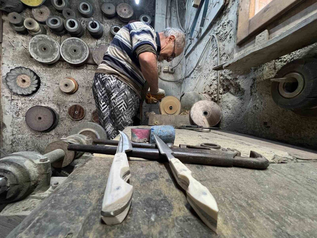Günde 3 tane kama yapması durumunda 5-6 bin TL para kazanabileceğine dikkat çeken Alpaslan, “Kama yapımını babamdan ve dedemden öğrendim. Bu mesleği bize bırakanlardan Allah razı olsun. Bize bir meslek öğrettiler. Kamanın yapımı 72 işlemden geçer. Önceleri günde yaklaşık 8 kama yapardım, yanında meyve bıçağıyla birlikte toplamda 16’ya ulaşırdı. Şimdi ise günde ancak 3 tane yapabiliyorum. Gençler atalarının mesleğini unutmasın. Örneğin kamayı meyve bıçağıyla birlikte 2 bin TL’ye yapıyorum. Günde üç tane yaparsam 5-6 bin TL kazanırım; başka hiçbir yerde bir günde o kadar para kazanamam. Şimdiki nesil kendini fazla zorlayacak iş aramıyor, genelde masa başı işlerini tercih ediyor. Bilhassa Yunanistan’dan gelip alanlar var. Buradan gidenler de Yunanistan’da uzun süre bu mesleği sürdürdü. 1955 yılında 7 yaşındaydım. Dedem ustaydı, babam ise onun çırağıydı. İkisinin de usta olduğu döneme yetiştim. Dolayısıyla bu mesleği üçüncü kuşak olarak sürdürüyorum. Ancak çocuklarımdan bu işi yapan yok” şeklinde konuştu.