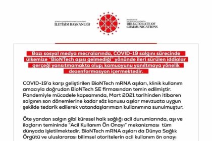 Dezenformasyonla Mücadele Merkezi, COVID-19 döneminde Türkiye’ye BioNTech aşısının gelmediği iddialarını yalanladı. BioNTech…