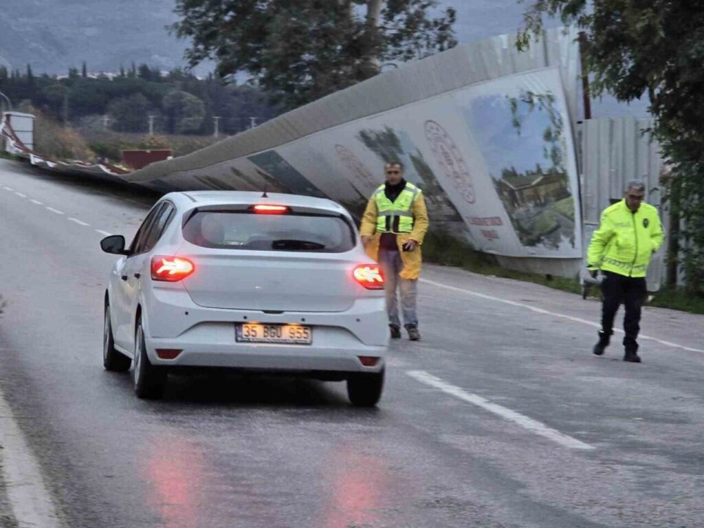 Selçuk’ta Fırtına Nedeniyle Büyük Reklam Panoları Ana Yola Devrildi, Kaza Olmadı