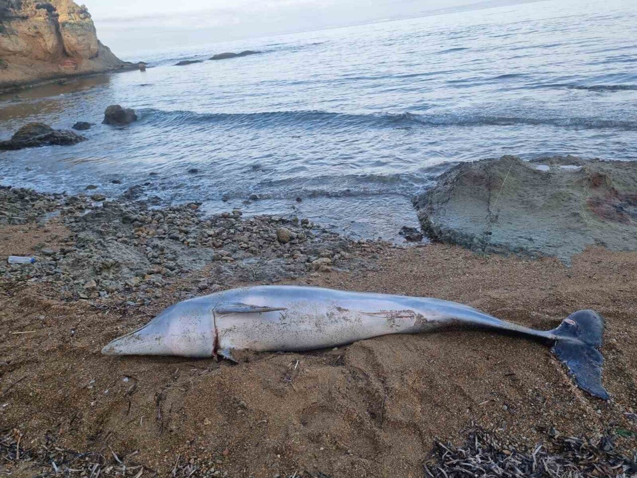 Çanakkale'nin Gelibolu ilçesindeki Güneyli sahilinde, 1.5 metre boyunda ölü bir yunus balığı…