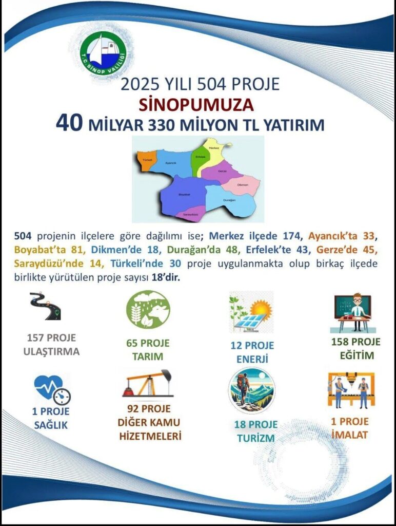 Sinop'ta 2025 yılı için planlanan kamu yatırımları kapsamında toplam 504 proje belirlendi,…