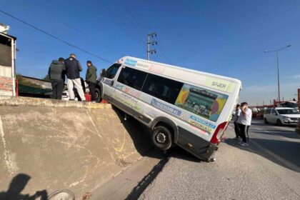 Derince’de Park Halindeki Minibüs, İstinat Duvarından D-100 Kara Yoluna Düştü