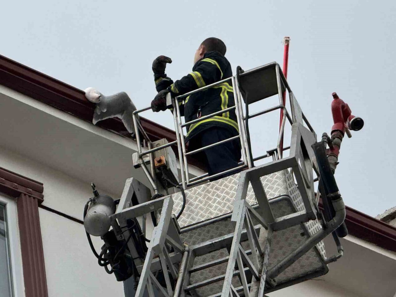 Edirne’de Çatıya Sıkışan Martı, İtfaiye Ekiplerince Kurtarıldı
