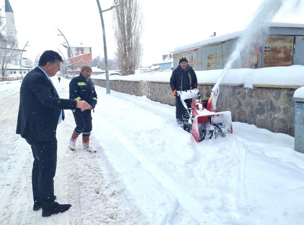 Pasinler Belediyesi karla mücadele çalışmalarını sürdürüyor, Başkan Sertoğlu süreci yerinde denetliyor.