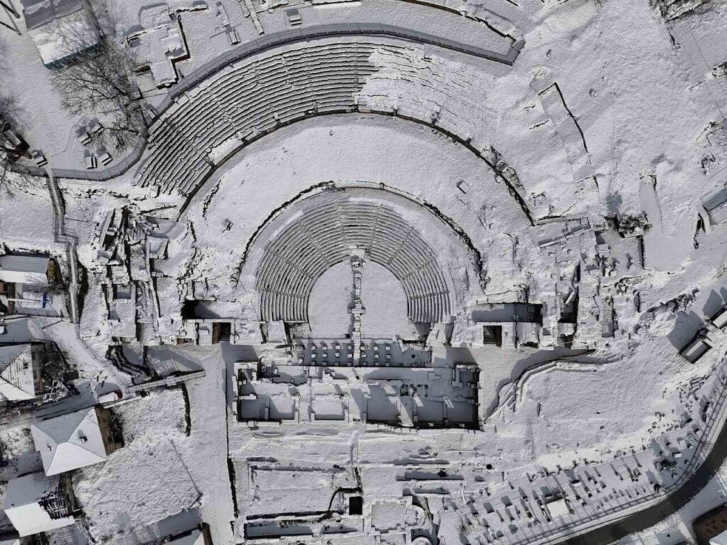 Düzce’nin Prusias Ad Hypium Antik Kenti, kar yağışı sonrası muhteşem bir manzara sundu.
