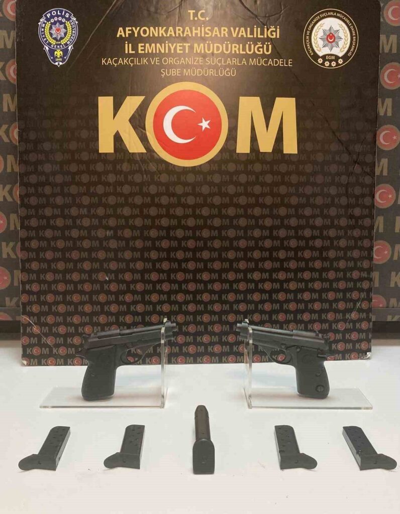 Afyonkarahisar'da polis, durdurduğu bir araçta yaptığı aramada 2 ruhsatsız tabanca ve 5…