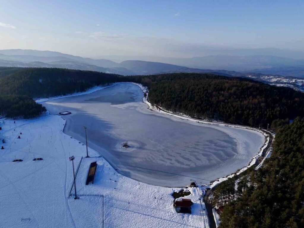 Düzce’de Kaynaşlı’daki Topuk Yaylası göleti, hava sıcaklığının eksi 10 dereceye düşmesiyle dondu.