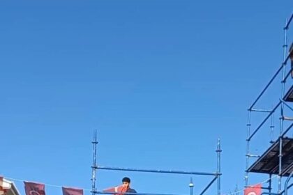 Bursa’da Çocuklar Türk Bayrağını Yeniden Dalgalandırmak İçin Direğe Tırmandı