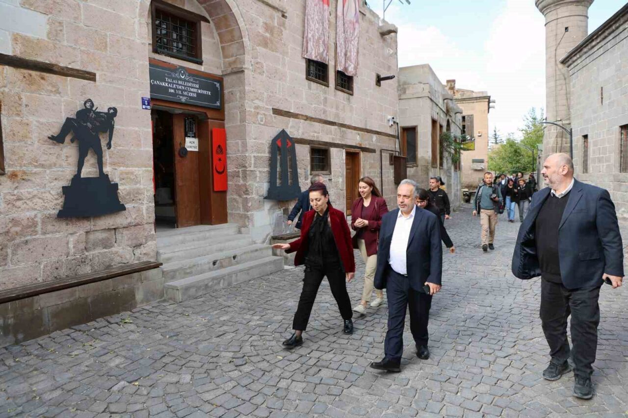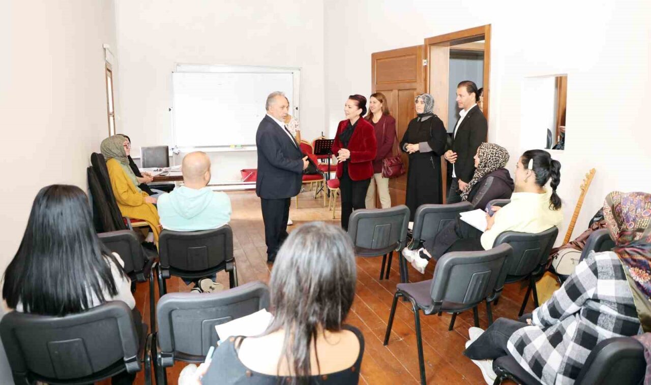 Talas Belediyesi, müzik ve sanatla toplumsal farkındalığı yükselten kültürel etkinlikleri ile dikkatleri üzerine çekmeye devam ediyor. Osmanlı Kültür Sokağı’ndaki Talas Musiki Cemiyetini ziyaret eden Erciyes Üniversitesi (ERÜ) Güzel Sanatlar Bölüm Başkanı Nihal Şengün, bağlama kursundaki çalışmaları yerinde değerlendirerek, “Bu kurslar son derece önemli bir hizmet. Sanatı toplumla buluşturan Başkanımızı yürekten tebrik ediyorum” şeklinde değerlendirmelerde bulundu.