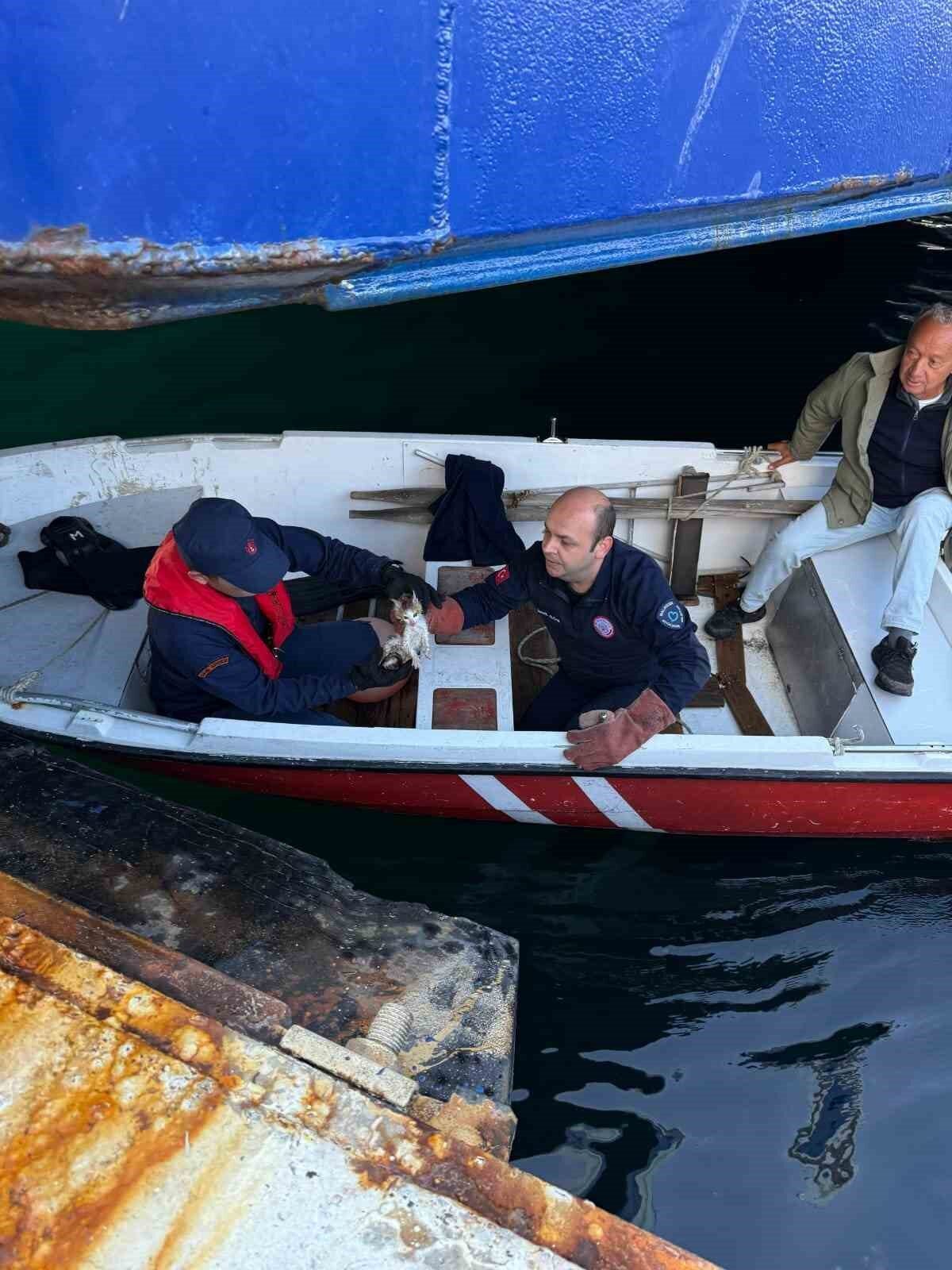 ERDEK’TE DENİZE DÜŞEN YAVRU KEDİ KURTARILDI