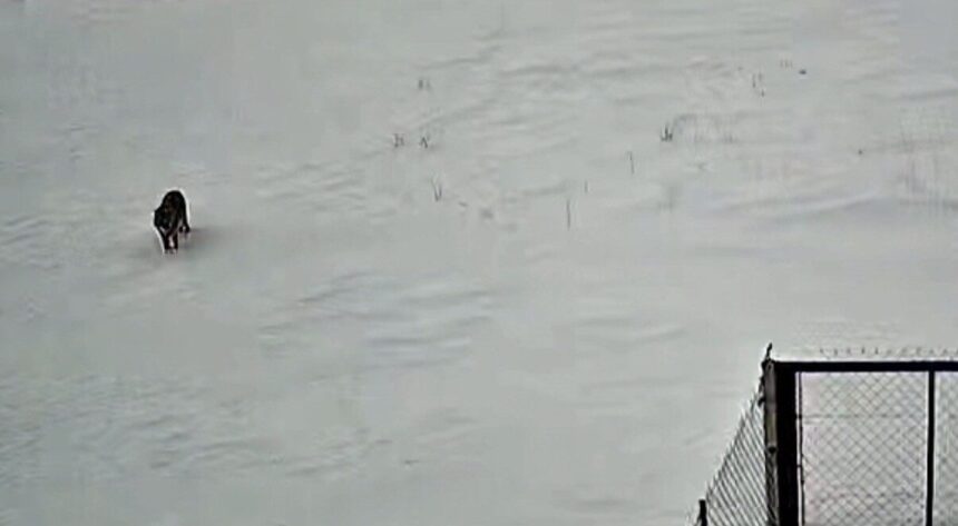 Bitlis’in Tatvan ilçesine bağlı Benekli köyüne inen kurt güvenlik kamerasına yakalandı.