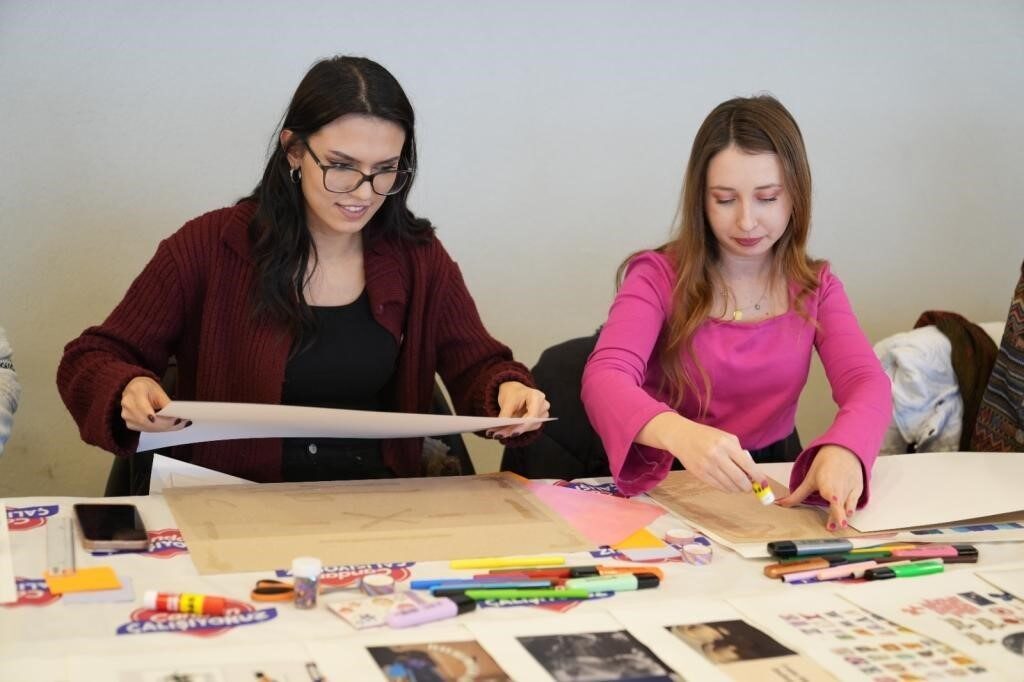 Kadın ve Aile Hizmetleri Şube Müdürlüğü Psikoloğu Rümeysa Güngör, Çocuk Gelişim Uzmanı Berre Çakırlar ve Sosyolog Selinay Demirhanöz rehberliğinde yürütülen atölyede, sanatın iyileştirici ve kapsayıcı gücünden yararlanıldı. Etkinlik süresince kadınlar, kendi yaşamları üzerine düşünme, hedeflerini sorgulama ve gelecek beklentilerini somutlaştırma fırsatı buldular.