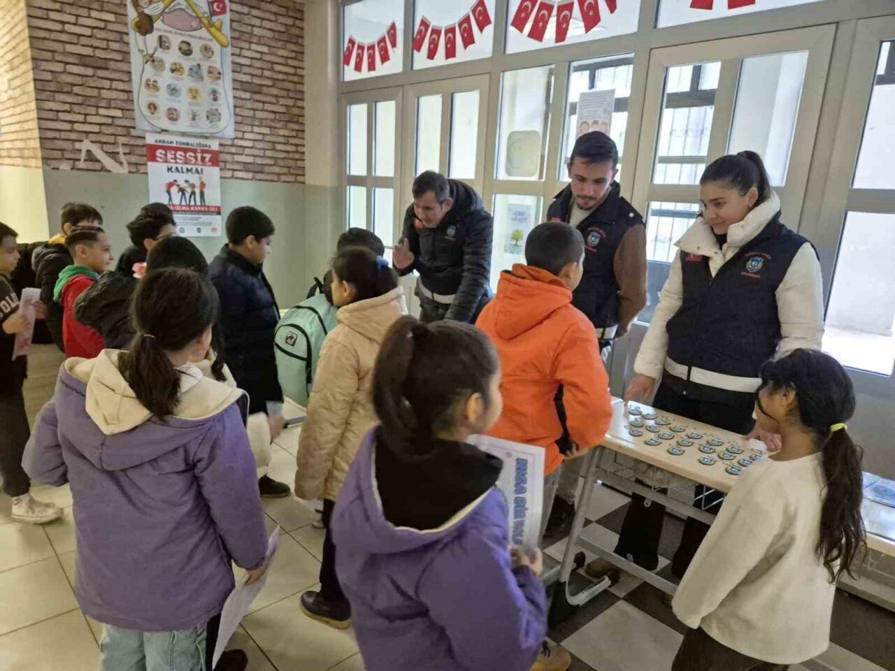 Karne törenlerinde okul bahçelerinde ve sınıflarda öğrencilerle bir araya gelen emniyet personeli, çocuklara kişisel güvenlik, trafik kuralları, güvenli internet kullanımı ve acil durumlarda yapılması gerekenler hakkında bilgilendirmelerde bulundu. Öğrencilerin bilinçli ve güvenli bireyler olarak yetişmesine katkı sunmayı hedefleyen etkinlikte, çocuklarla birebir iletişim sağlandı. Etkinlik sonunda öğrencilerin karne hediyeleri takdim edilirken, başarılı bir eğitim dönemini geride bırakan çocuklara iyi tatiller temennisinde bulunuldu. Emniyet yetkilileri, öğrencilerin yeni eğitim öğretim dönemine sağlıklı, güvenli ve motive bir şekilde başlamalarının önemine dikkat çekti.