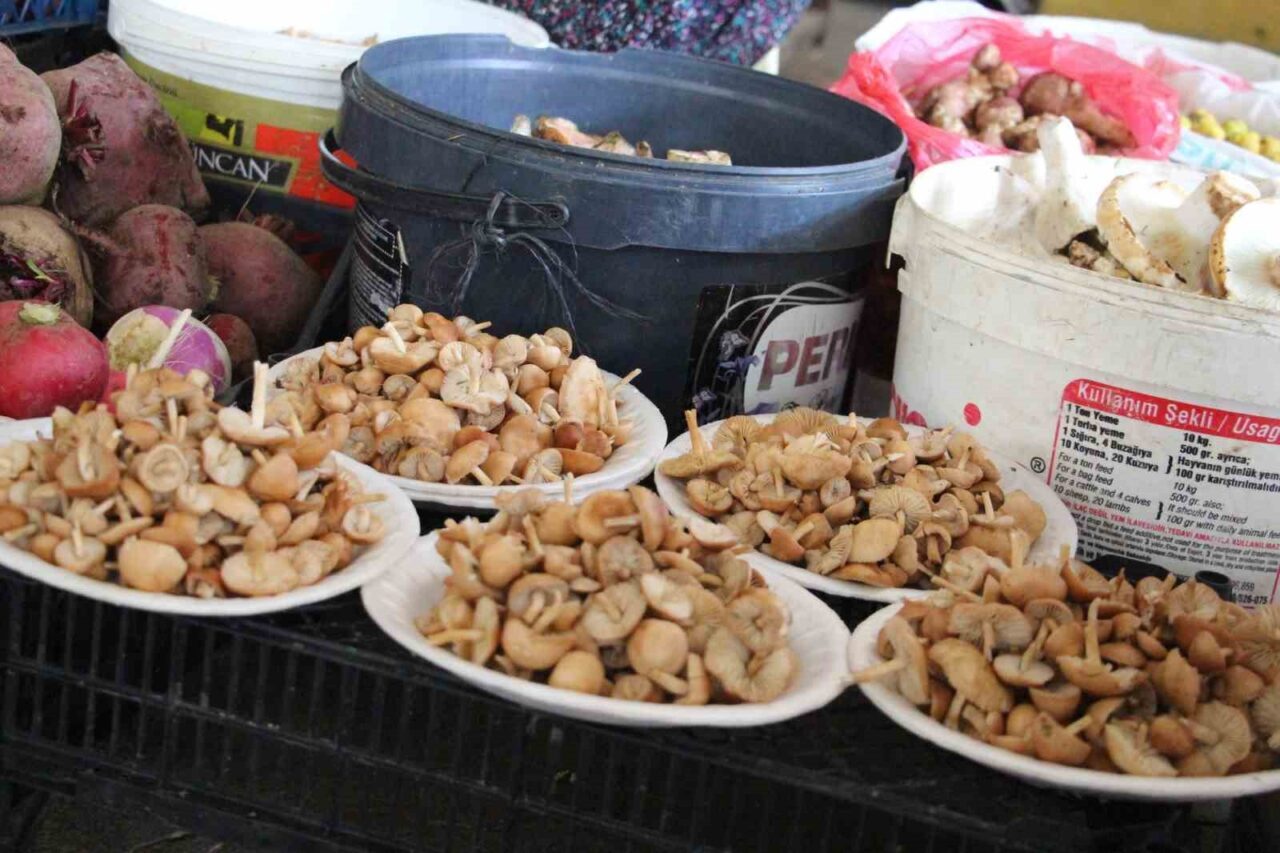 BOLU’DA YAĞIŞLARIN ARDINDAN ORMANLARDA ÇIKAN KANLICA MANTARLARINI KOVA KOVA TOPLAYAN VATANDAŞLAR, PAZARDA SATIŞA ÇIKARDI. KİLOSU 400 LİRADAN SATILAN KANLICA MANTARI VATANDAŞIN GÖZDESİ OLDU.