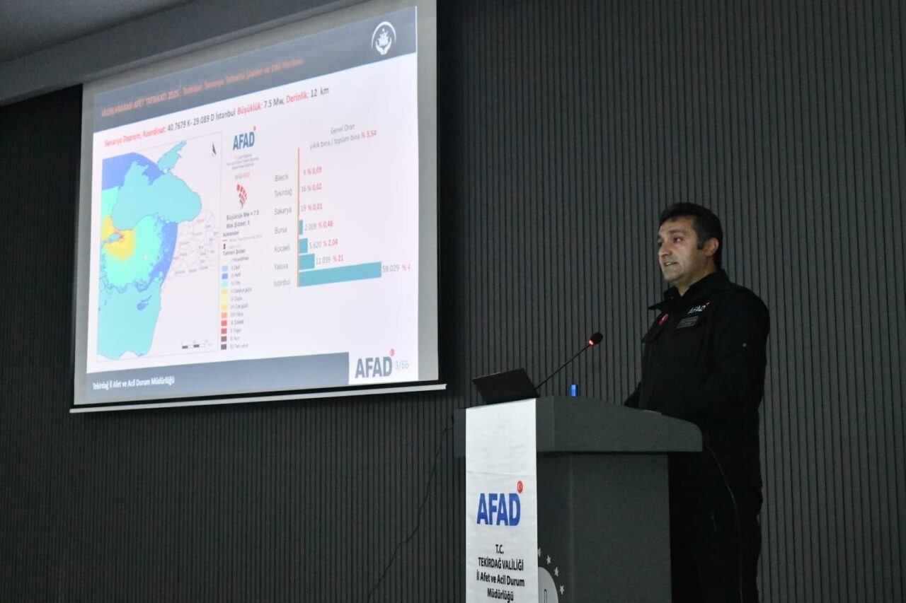 Tekirdağ, 26 Kasım 2025 tarihinde İstanbul-Adalar merkezli olarak gerçekleştirilecek 7.5 Mw büyüklüğündeki Ulusal Düzey Tatbikatı ile 17 Aralık 2025 tarihinde düzenlenecek Tekirdağ-Şarköy merkezli 7.3 Mw büyüklüğündeki Bölge Düzeyi Tatbikatı öncesinde önemli bir toplantı yapıldı.