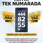Artık Terme Belediye’sine bağlı tüm hizmetlere tek bir numara ile ulaşmak mümkün hale geldi. Terme halkı, 444 82 55 telefon numaralı çağrı merkezi üzerinden belediyeye ait hizmetlere erişebilecek. Bunun yanı sıra, hattın WhatsApp İhbar Hattı seçeneği de faaliyete geçti.