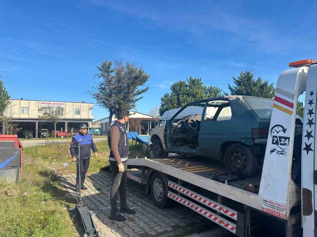 Terme’de Zabıta Ekipleri Hurda Araçları ve Atıl Malzemeleri Kaldırdı