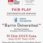 Türkiye Milli Olimpiyat Komitesi (TMOK) Fair Play Komisyonu, “Fair Play Üniversiteler Kervanı” projesinibaşlatıyor. Bu kapsamda öğrencilerle buluşma etkinliği 31 Ekim Cuma günü Bartın Üniversitesi’nde düzenlenecek.