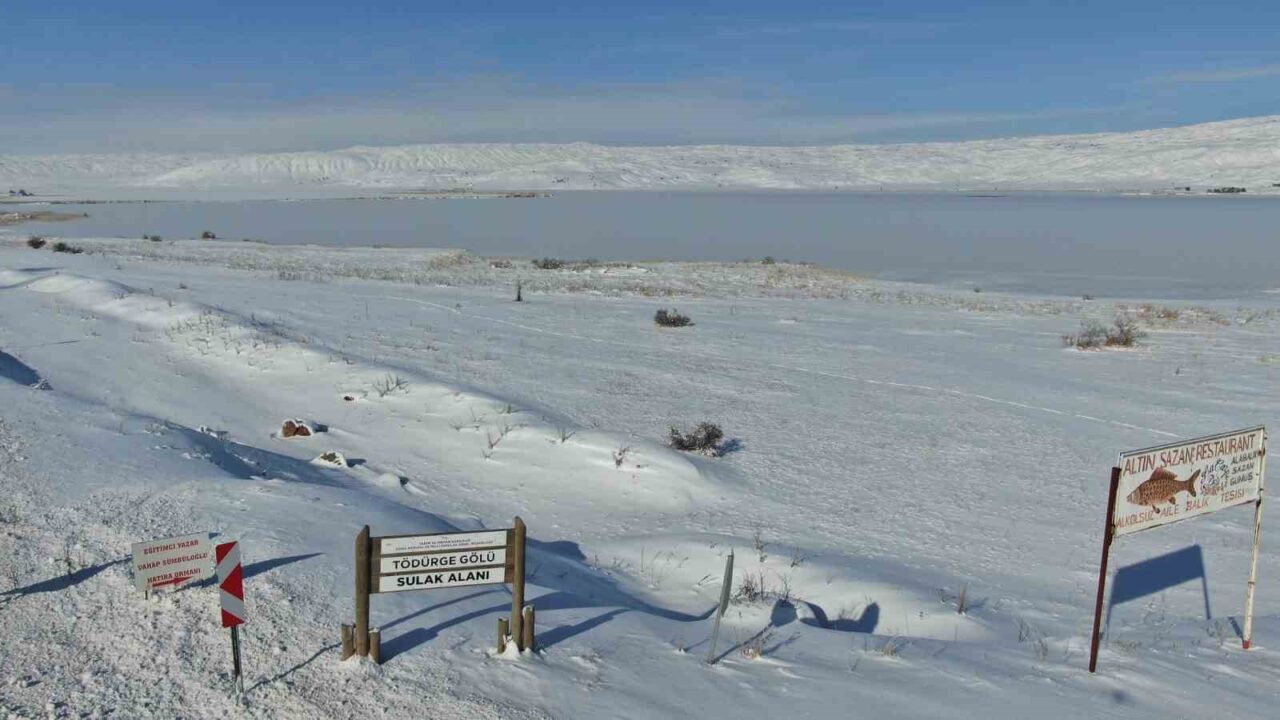 Sivas’ta birçok efsaneye konu olan ve yaz aylarında binlerce göçmen kuşu ağırlayan Tödürge Gölü tamamen buzla kaplandı. Soğuk havanın etkisiyle donan gölde kartpostallık görüntüler ortaya çıktı.