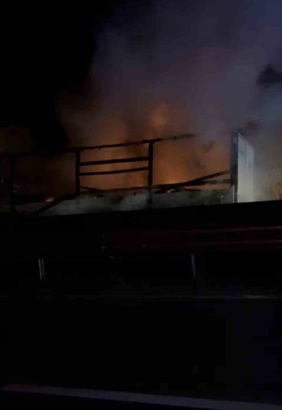 TOKAT’IN ERBAA İLÇESİNDEN NİKSAR İSTİKAMETİNE SEYİR HALİNDE İLERLEYEN İRAN PLAKALI BİR TIRDA ÇIKAN YANGIN PANİĞE NEDEN OLDU.