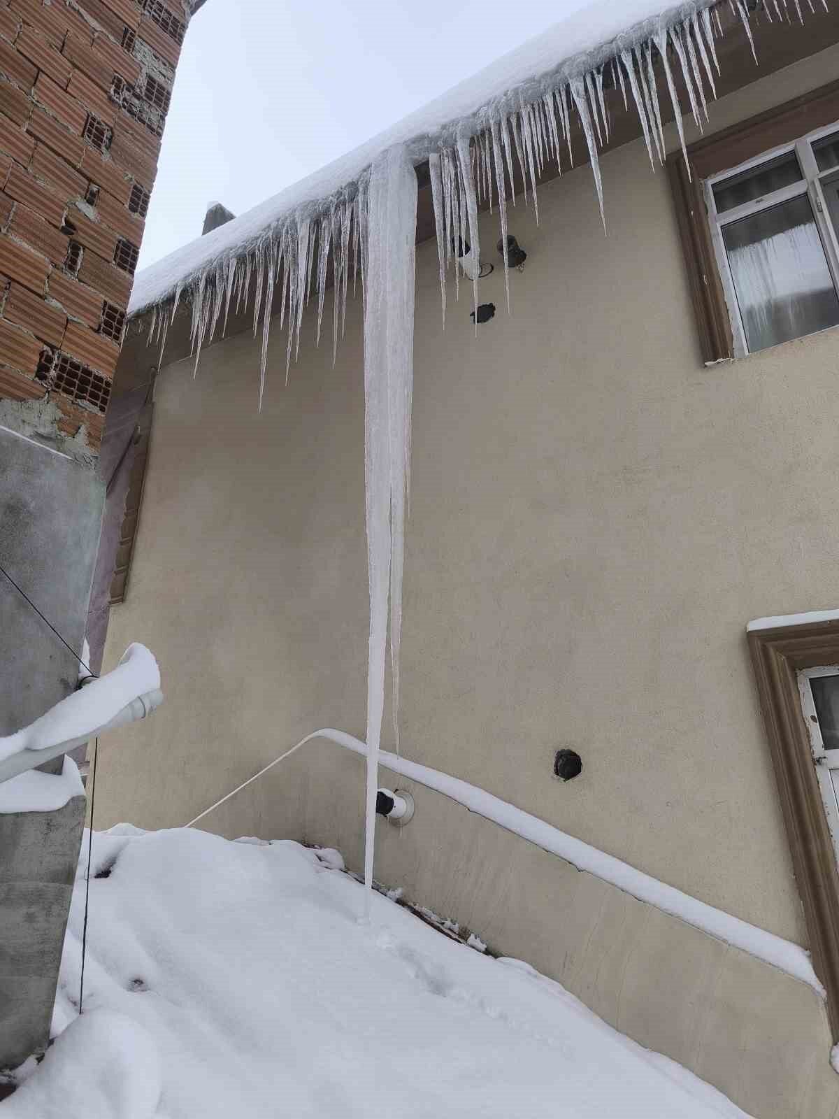 Çatı saçaklarında 5 metreyi bulan buz sarkıtları oluştu
