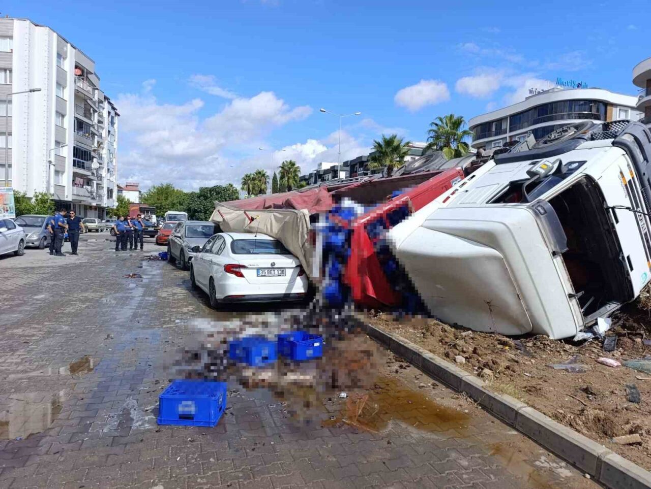 İzmir’in Torbalı ilçesinde sabah saatlerinde meydana gelen bir kaza, sürücünün direksiyon kontrolünü kaybetmesi sonucu gerçekleşti. Kontrolden çıkan tır, yan yola uçarken, park halindeki iki aracı ezdi.