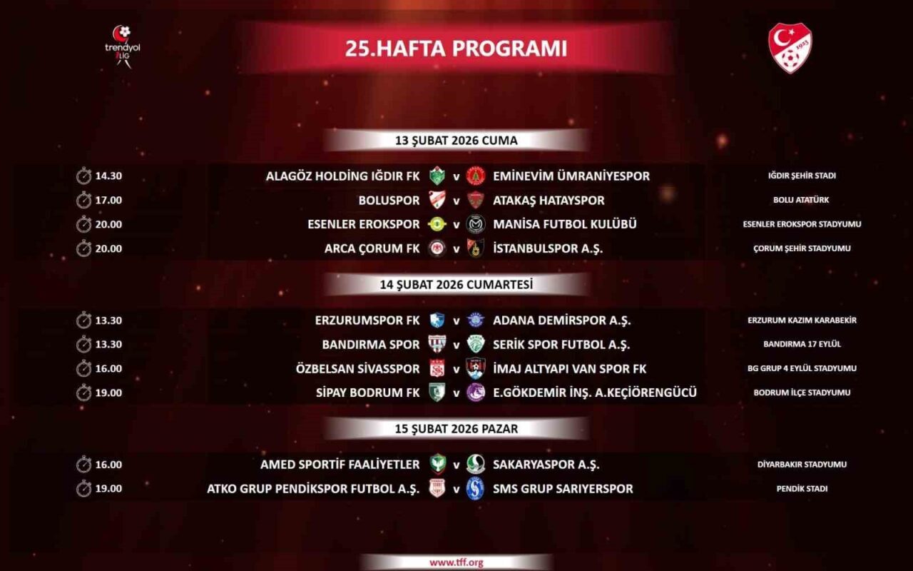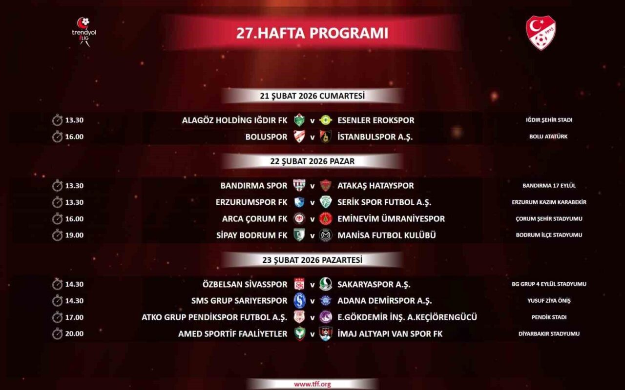 Trendyol 1. Lig’de 23-27. hafta programı şöyle: