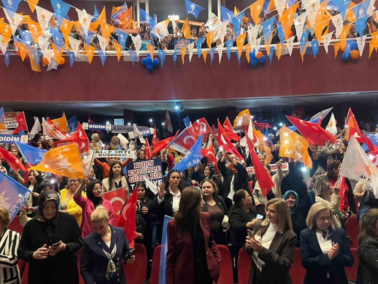 Toplantı, Şükran Güngör Yıldız Kenter Tiyatro Salonu’nda düzenlendi. Ercan’ın yanı sıra, AK Parti Aydın Milletvekili Seda Sarıbaş, Aydın Büyükşehir Belediye Başkanı Özlem Çerçioğlu, İl Başkanı Mehmet Erdem ve İl Kadın Kolları Başkanı Şahika Edremit ile birçok il ve ilçe teşkilatı toplantıya katıldı. Coşkulu bir şekilde karşılanan Özlem Çerçioğlu, kadınların yardım ve destekleri ile Aydın’da yeni bir tarih yazacaklarını belirtti. “Daha fazla emeğe ihtiyacımız var. Sayın Cumhurbaşkanımızı Aydın’da birinci parti yapmaya var mısınız? Bizimle birlikte olursanız, birlikte başarılara imza atacağız” ifadelerini kullandı.