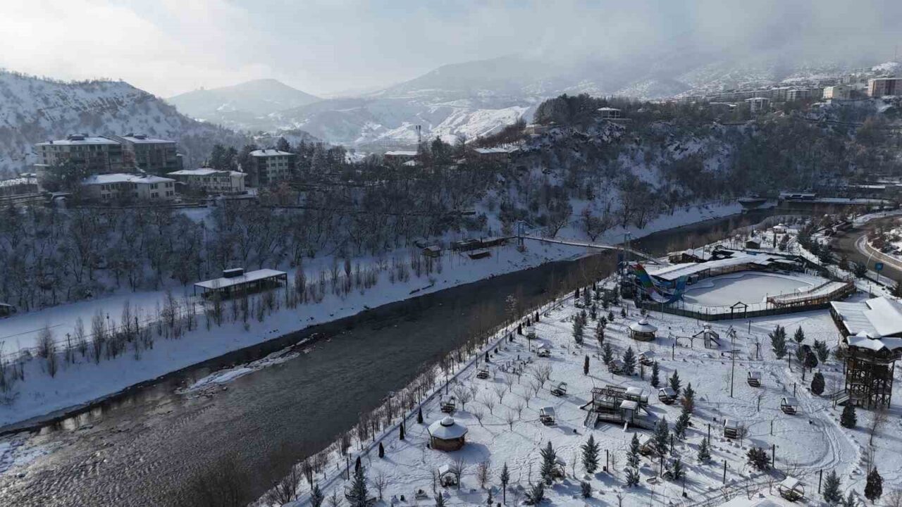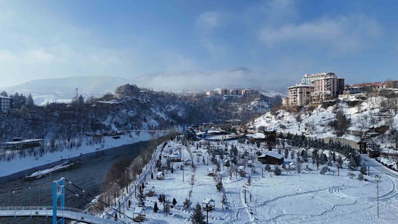 Doğu Anadolu’nun kendine has coğrafyası ve doğal güzellikleriyle öne çıkan Tunceli, yaklaşık bir haftadır etkisini sürdüren yoğun kar yağışı ve dondurucu soğukların ardından tamamen beyaza büründü. Kent genelinde aralıklarla devam eden kar yağışıyla birlikte dağlar, vadiler ve yerleşim alanları kalın bir kar tabakasıyla kaplandı. Bu eşsiz manzara havadan görüntülendi. Munzur Dağları’nın eteklerinden süzülerek kent merkezinin kıyısından geçen Munzur Nehri, karla kaplı doğanın ortasında oluşturduğu görüntüyle dikkatleri üzerine çekti.
