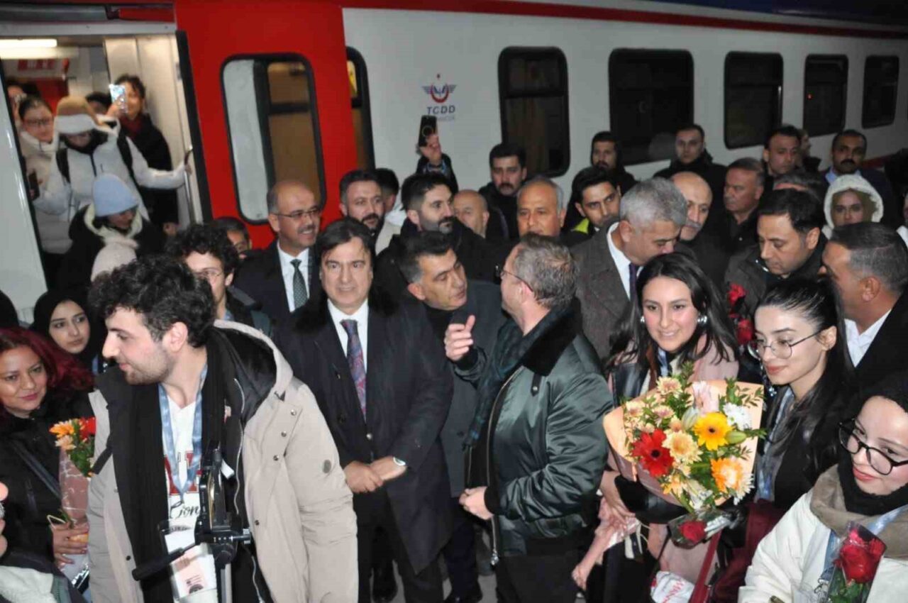 Tren, yaklaşık 1.300 kilometrelik etkileyici bir yolculuğun ardından Kars Garı’nda büyük bir coşkuyla karşılandı. Burada yolcuları bekleyen Kars Valisi Ziya Polat, misafirlere hoş geldin diyerek karanfil takdim etti.