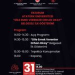 Belgeselin gösterimi, 31 Ekim 2025 tarihinde, Cuma günü saat 14.00’te, Atatürk Üniversitesi Kültür Merkezi Prof. Dr. Kemal Bıyıkoğlu Konferans Salonu’nda yapılacak. Etkinlik halka açık olarak düzenleniyor. Açılış konuşmalarının ardından belgeselin gösterimi gerçekleşecek ve program nihayetinde teşekkür konuşmaları ile son bulacak.