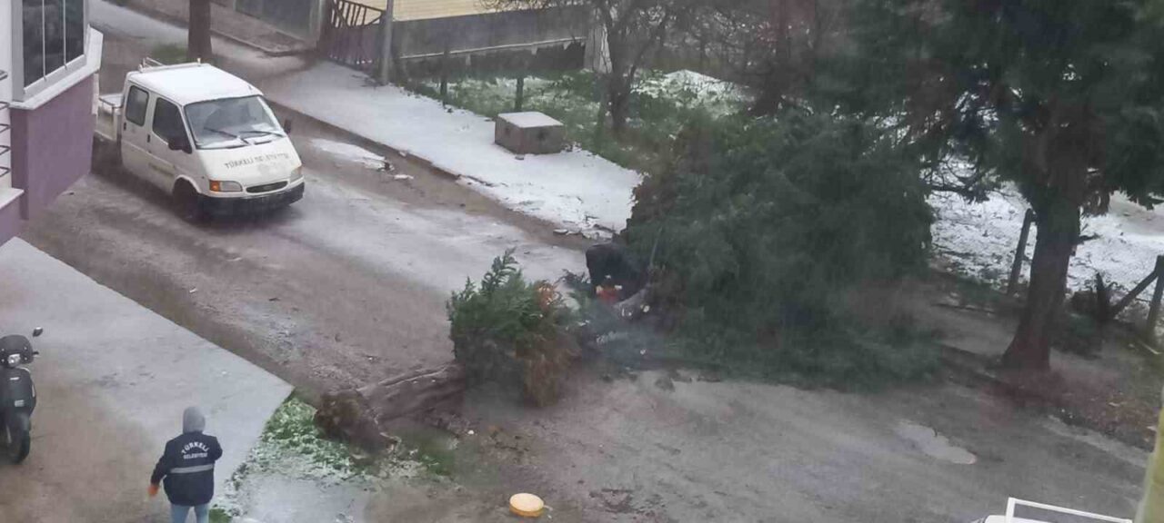 Edinilen bilgiye göre, ilçe genelinde devam eden olumsuz hava şartları sebebiyle Tümerkan Mahallesi Gazi Mustafa Kemal Atatürk Caddesi üzerindeki bir ağaç, şiddetli rüzgarın etkisiyle devrildi. Yola devrilen ağaç sebebiyle cadde bir süre ulaşıma kapandı ve bölgeye belediye ekipleri sevk edildi.