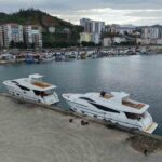 Trabzon’un Of ilçesinde inşa edilen 22 metrelik iki yat, tersaneden iki tıra yüklenerek yaklaşık 1 kilometrelik mesafenin ardından Of limanında denize indirildi. Yatlar, İstanbul Boğazı’nda turistik amaçlı hizmet vereceği ifade edildi.
