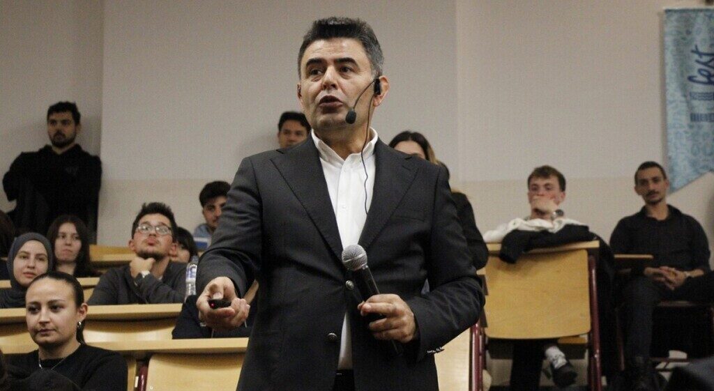 Konuşmasına, salonu dolduran öğrencilere teşekkür ederek başlayan Boyraz, Türkiye’nin jeopolitik konumunun dünya üzerindeki önemine dikkat çekti. Türkiye’nin sağladığı ulaşım kolaylıklarıyla 4 saatlik mesafe içinde 67 farklı ülkeye erişim sağladığını belirten Boyraz, şu şekilde konuştu: