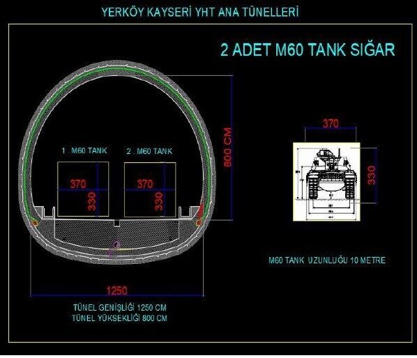 Ulaştırma ve Altyapı Bakanı Abdulkadir Uraloğlu, yaptığı açıklamalarda çift hatlı demiryolu tünellerinin, iki M60 tankının yan yana geçebileceği kadar geniş ve bir F-16 uçağının da sığabileceği bir hacme sahip olduğunu vurguladı.