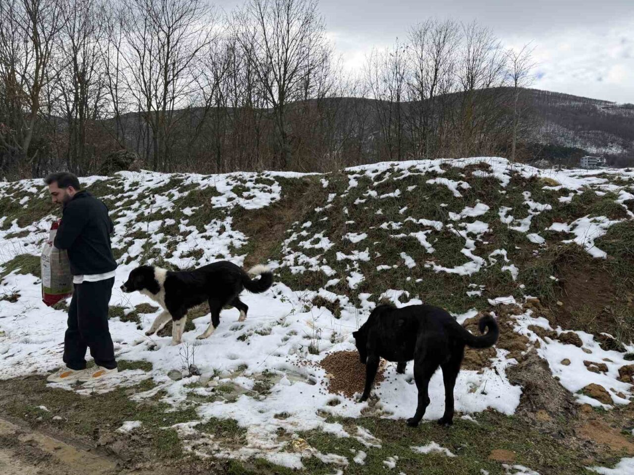 Uludağ’da etkili olan yoğun kar yağışı sonrası yiyecek bulmakta zorlanan sokak köpekleri için hayvanseverler seferber oldu.