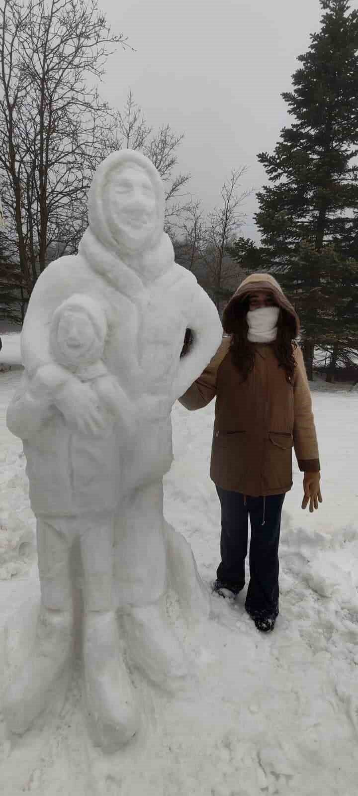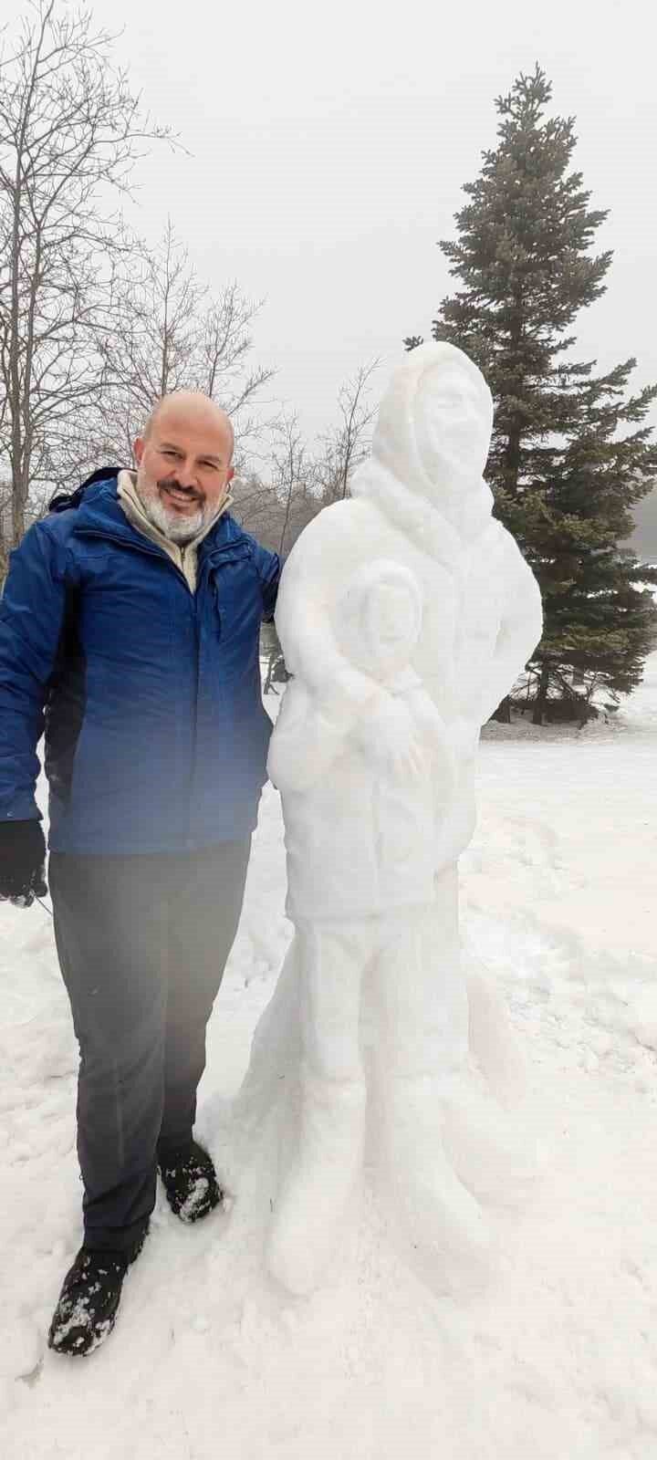 Uludağ Sarıalan mevkiinde Hakan Babaoğlu tarafından inşa edilen kardan heykel, detaylarıyla adeta bir sanat eserini andırdı. Anne ve çocuğu temsil eden heykel, gerçekçi duruşu ve ince işçiliğiyle öne çıkarken, bölgeden geçen vatandaşlar çalışmayı ilgiyle izledi ve fotoğraf çekti. Kış turizminin yoğun olarak yaşandığı Uludağ’da ortaya çıkan kardan heykel, ziyaretçilere görsel bir şölen sundu.