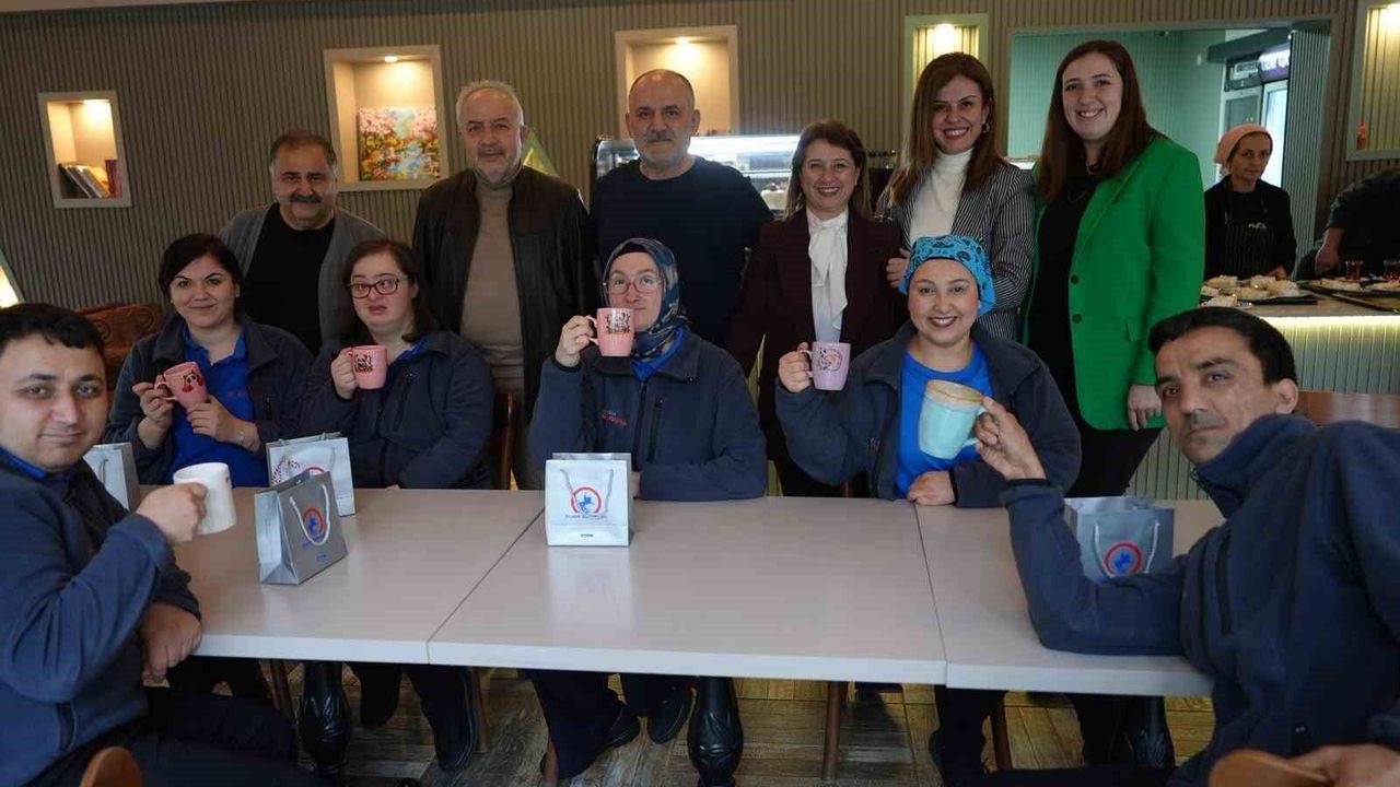 DÜZCE(İHA) - Tanınmış oyuncu ve tiyatro sanatçısı Nurullah Çelebi, Düzce Belediyesi Sosyal Hizmetler Müdürlüğü'nün düzenlemiş olduğu 21 Mart Down Sendromu Farkındalık Günü etkinliği çerçevesinde Kusursuz Kafe'yi ziyaret etti. Ziyarette Düzce Belediye Başkan Yardımcısı Ayşe Kılıç da yer aldı ve kafe çalışanlarıyla birlikte pasta keserek kutlama yaptı.